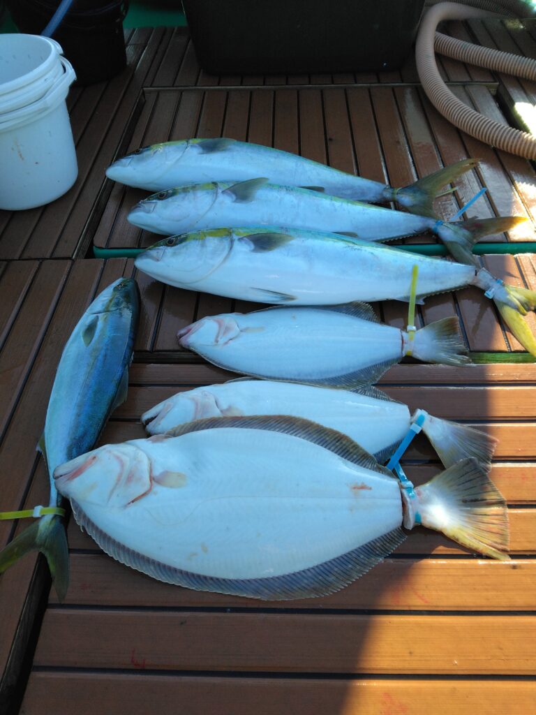 26日生きイワシ泳がせ釣り! 釣果情報 2023.11.26 綿丸初出船の生きイワシ泳がせ釣り出船しましたー! お客様も泳がせ釣り初挑戦! 朝一からワラサ~!トラブルも有りながら全員安打~! ヒラメもみごとにゲットー! 楽しい釣りになりました!