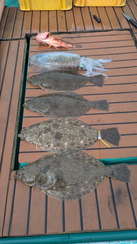 ヒラメ、カサゴ ゲストに1キロオーバーアオリイカ!